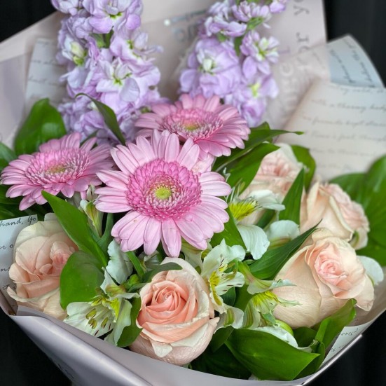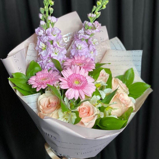 Букет «3 герберы и розы»
