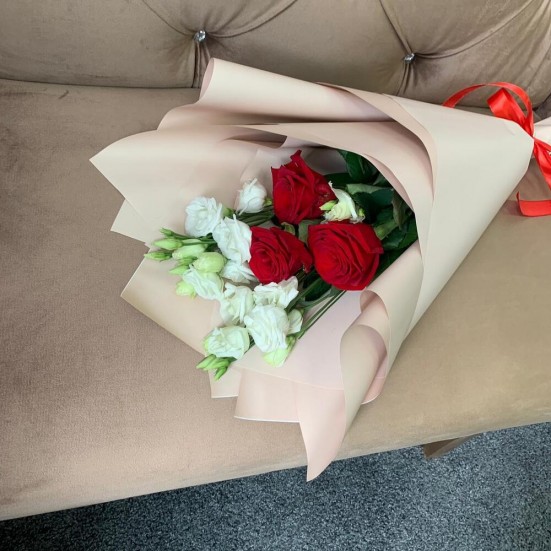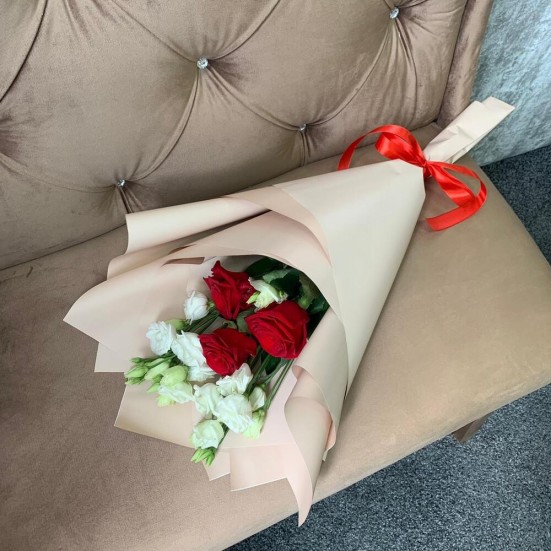 Букет «Эустомы, роза красная» в Королёве