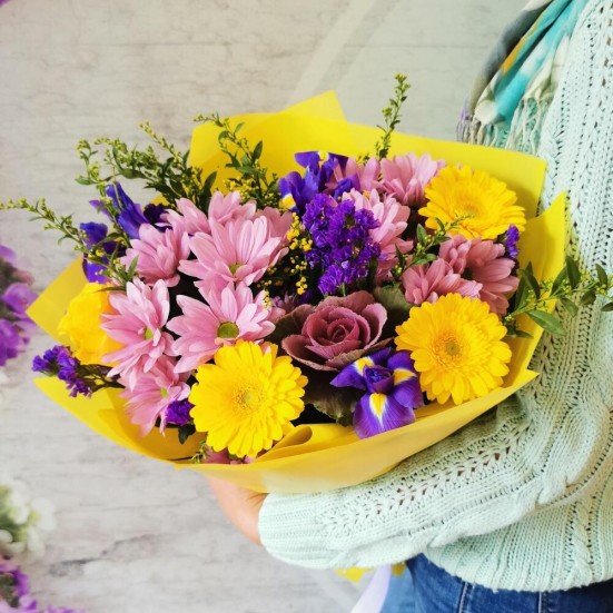 Букет с ирисами и хризантемами и герберами в Королёве