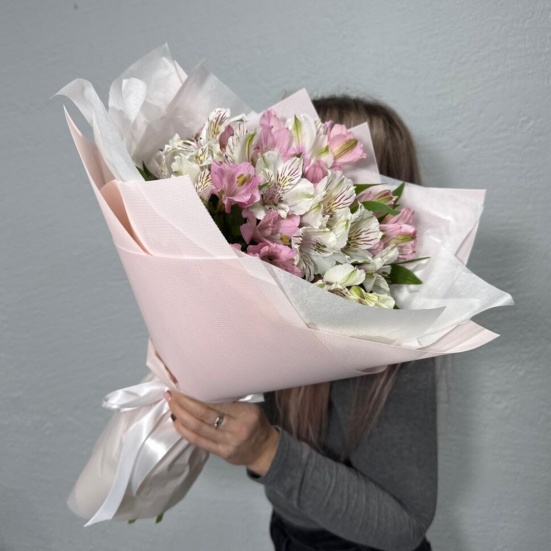 Букет из микс альстромерий белых и розовых в Королёве