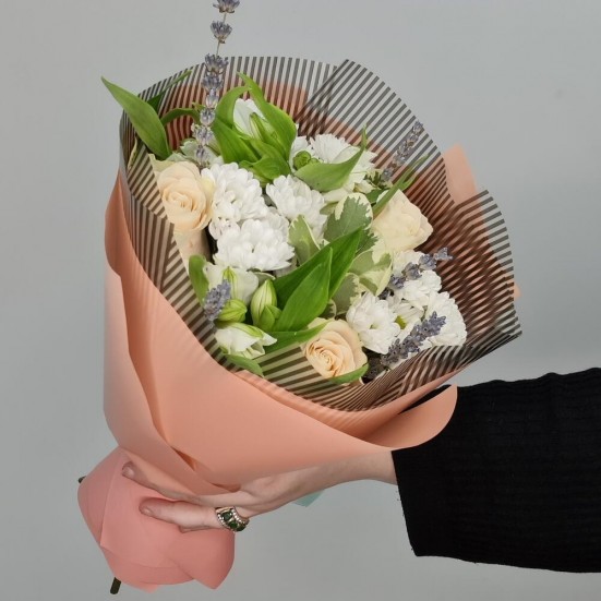 Букет из роз, хризантем и альстромерий