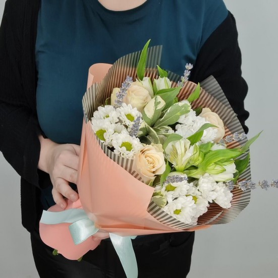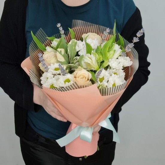 Букет из роз, хризантем и альстромерий в Королёве