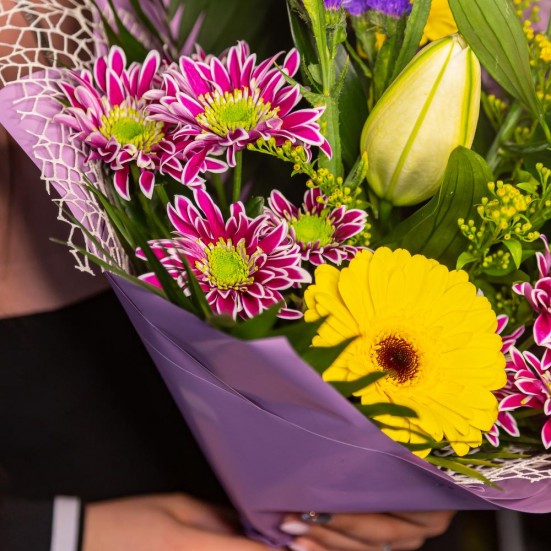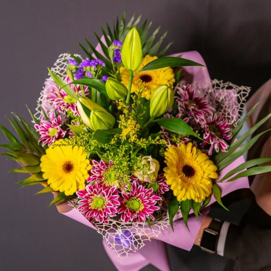 Букет с розами, хризантемами, лилиями, герберами в Королёве