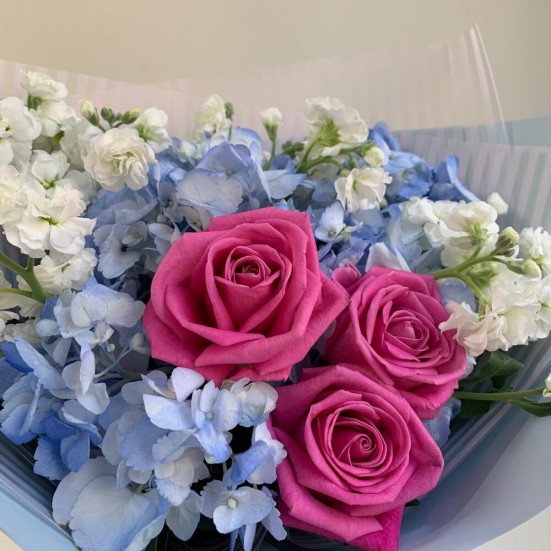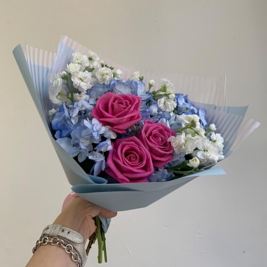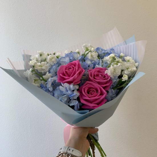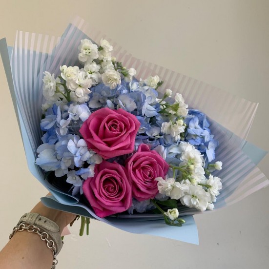 Букет с голубой гортензией и другими цветами в Королёве